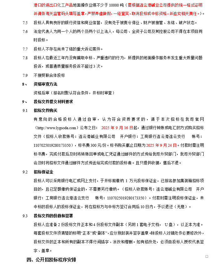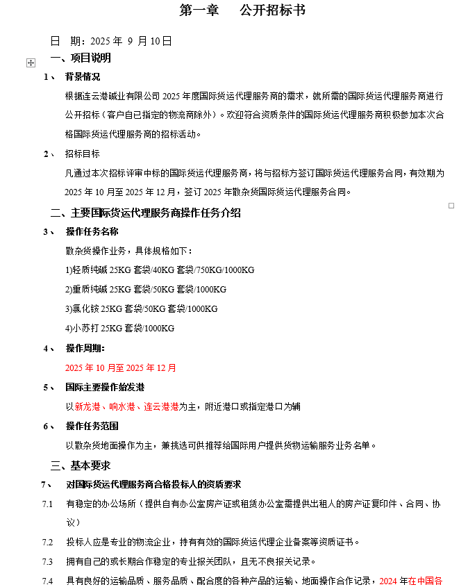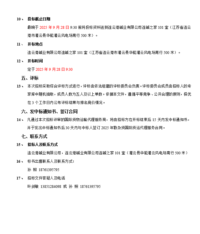 連云港堿業(yè)有限公司散雜貨國(guó)際貨運(yùn)代理服務(wù)商項(xiàng)目招標(biāo)公告