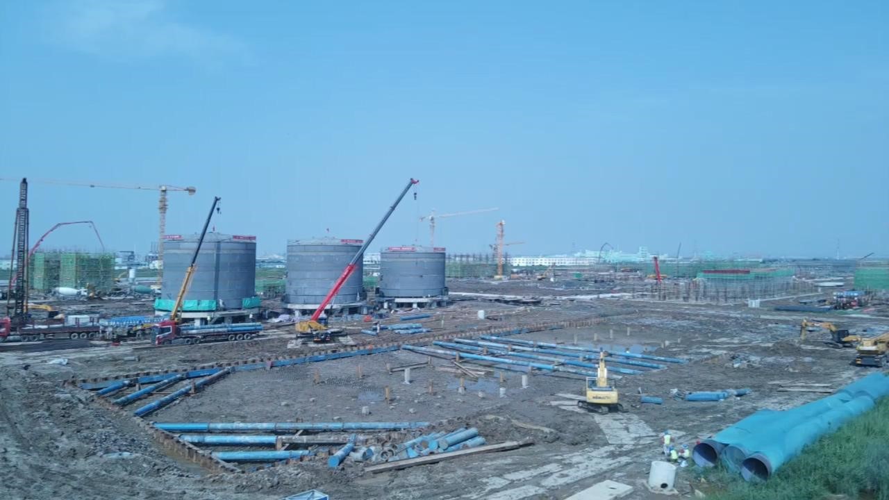 ⑶聯(lián)堿三標(biāo)段420脫鹽水站室外水池底板鋼筋綁扎;810火炬基礎(chǔ)短柱砼澆筑;561事故水池第一段砼澆筑完成,第三段開始鋼筋綁扎;540小蘇打裝置基礎(chǔ)防腐、4個設(shè)備基礎(chǔ)養(yǎng)護(hù);160編織袋庫防腐粉刷;535成品庫房33軸~44軸筏板鋼筋模板安裝、筏板砼澆筑、承臺及基礎(chǔ)梁開挖。
